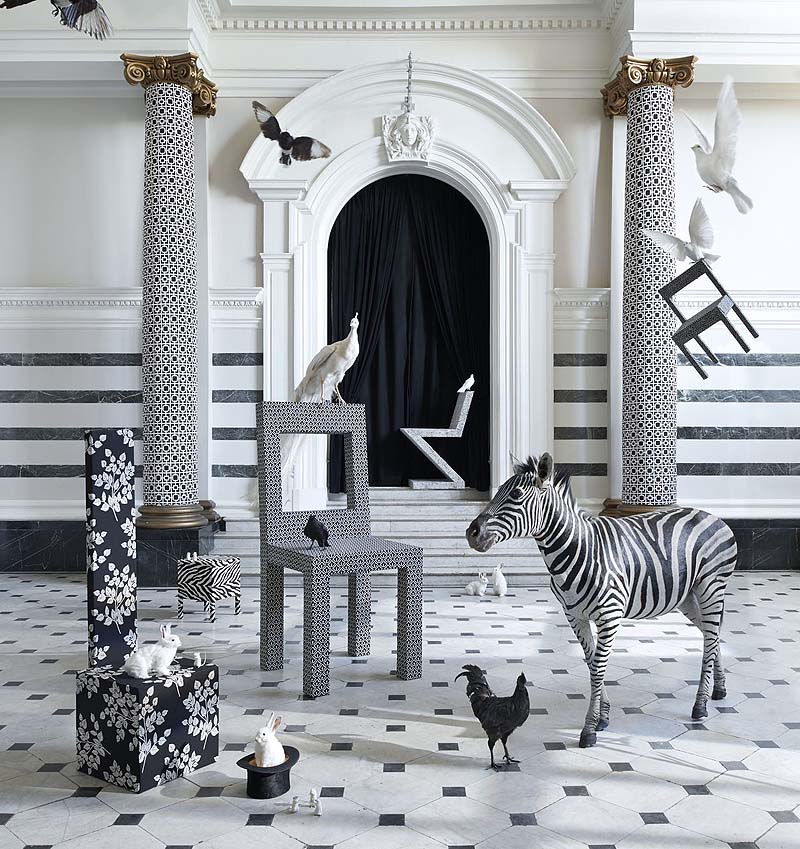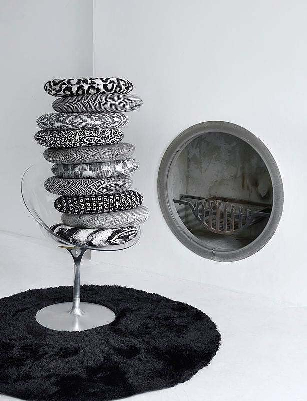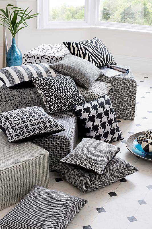 A collection of upholstery in black / white colors. From velvet to embroideries, the essential plains and a variety of patterns, all carefully composed.