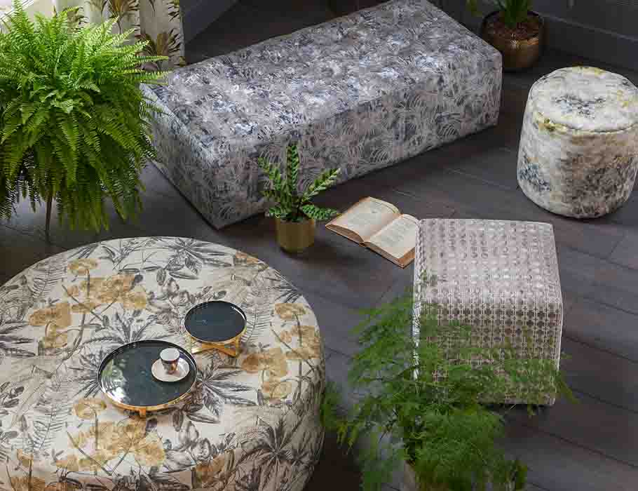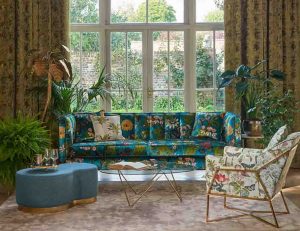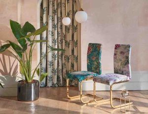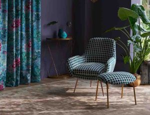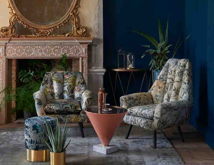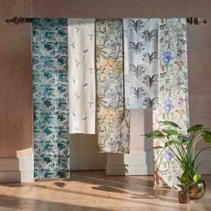 Birds of paradise, passion flowers and exotic island life dazzle against opulent velvets, rustic linens, embroideries and intricate weaves. With 45 colours ranging from kingfisher tones to vibrant teals and softer combinations of slate, amethyst mineral and blush, this stunning collection is a seductive homage to tropical island life.