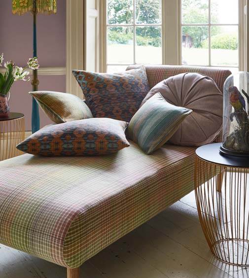 Collection of lively upholstery fabrics. Stripes, herringbone, ombré and tartan done in fresh, new colors. Unexpected tonal combinations provide a contemporary spirit, with warmth ensured by wool-soft yarns. Abrasion resistance> 40,000 Martindale. The fabrics are made of 100% polyester, so easy to maintain and colourfast. The price certainly makes it an extra attractive collection.