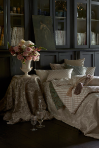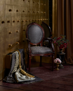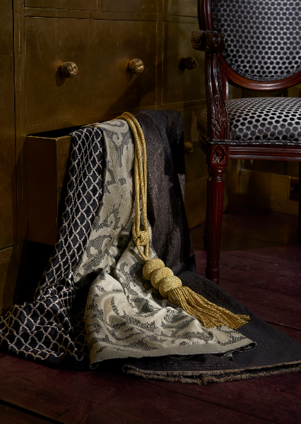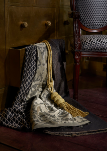 Een statige en imposante verzameling decoratieve stoffen. Weelderige jacquardweefsels en borduurwerken. De stoffen zijn geschikt voor meubelbekleding (licht gebruik), luxueuze gordijnen, sierkussens, beddenspreien…