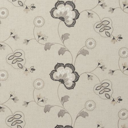 Flexible fine woven curtain fabric with embroidered floral pattern. The fabric is suitable for curtains and as decoration fabric.