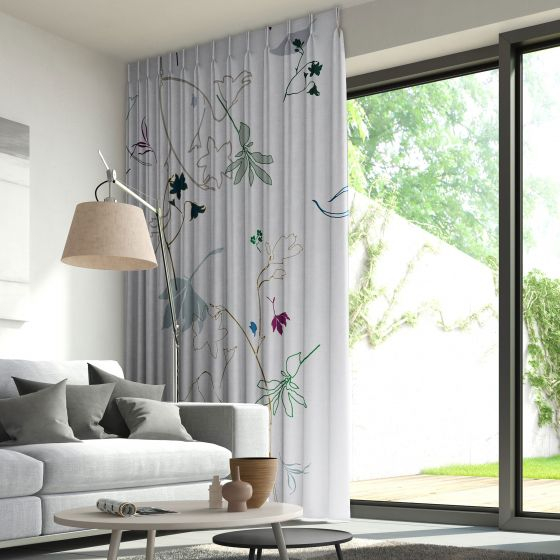 Curtain fabric from de Ploeg. This fabric has a fine structure and an abstract flower pattern. ↨ 300 cm.