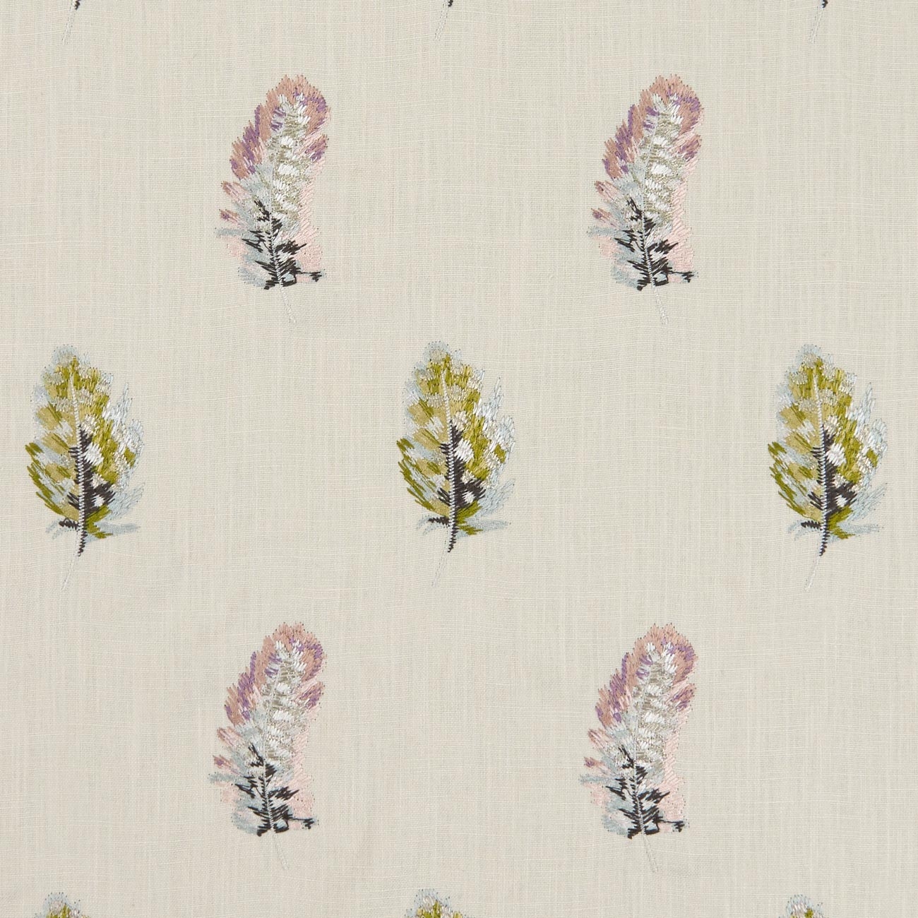 - Fine woven decorative fabric with embroidered feathers.
