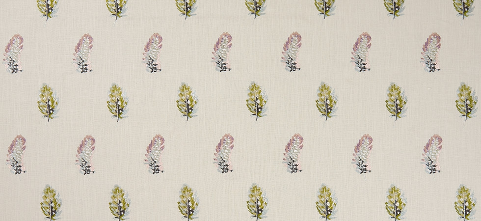 Fine woven decorative fabric with embroidered feathers. Width 128 cm.