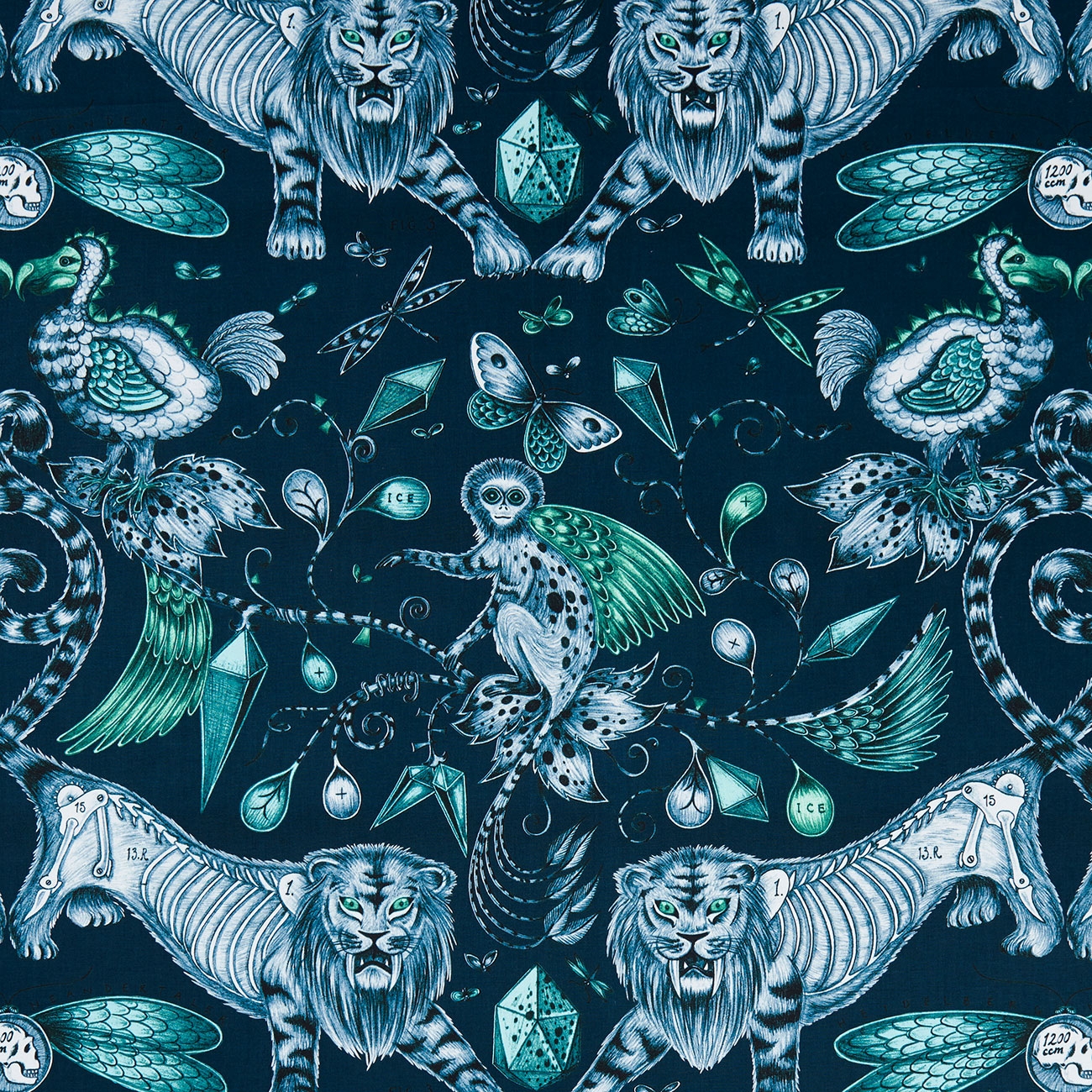 Soft shiny, satin-like furniture fabric with a beautiful pattern by artist Emma J Shipley. This material has an abrasion resistance of 30,000 Martindale. Suitable for furniture upholstery, curtains and decoration.