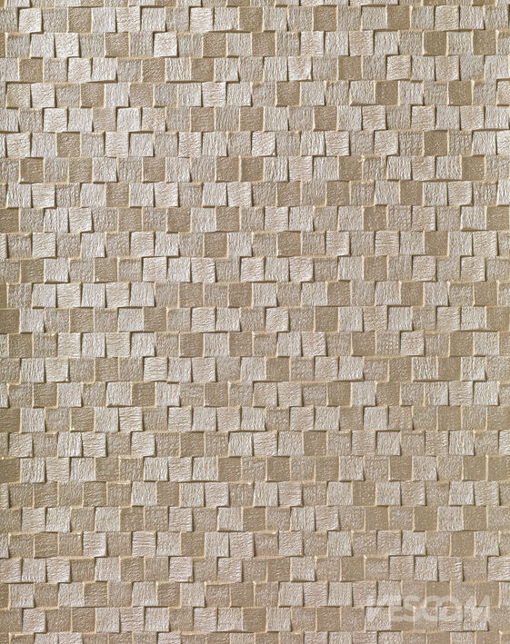 Vinyl wallcovering with a structure consisting of small squares inclined in various directions.