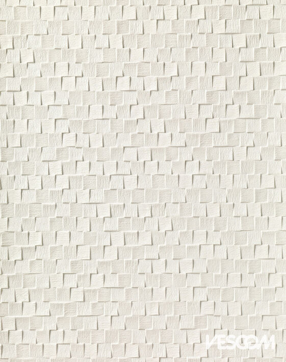 Vinyl wallcovering with a structure consisting of small squares inclined in various directions.