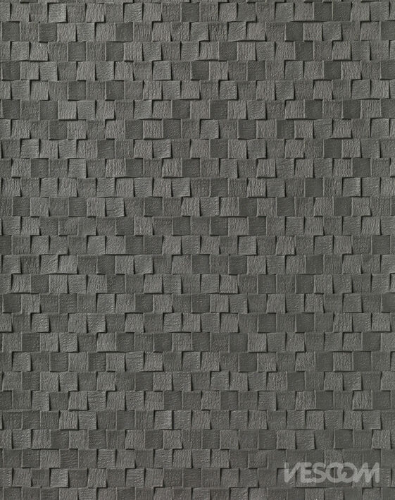 Vinyl wallcovering with a structure consisting of small squares inclined in various directions.
