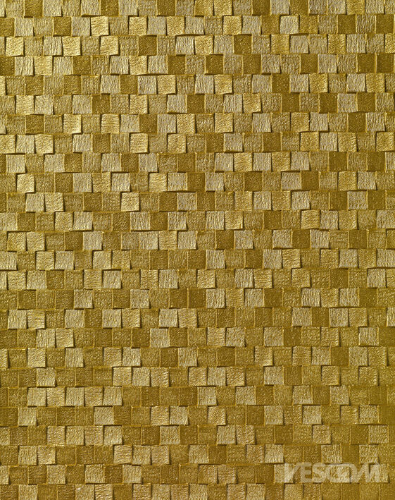 Vinyl wallcovering with a structure consisting of small squares inclined in various directions.