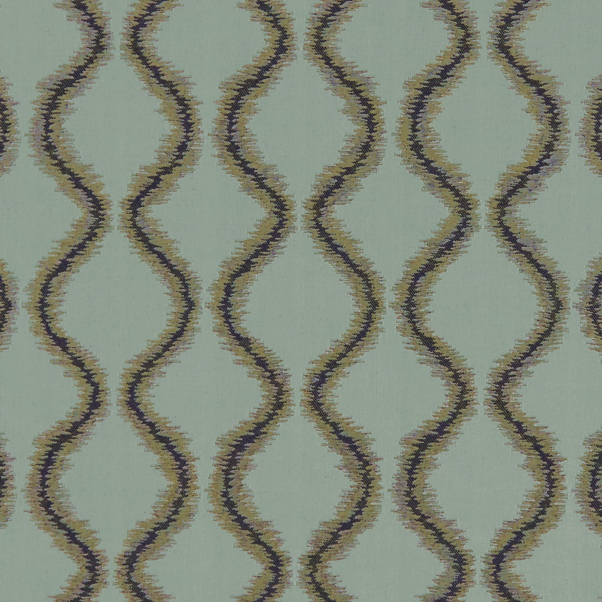 Gladde, glanzende gordijn- en decoratiestof met geometrische patronen. 137.5 cm breed.