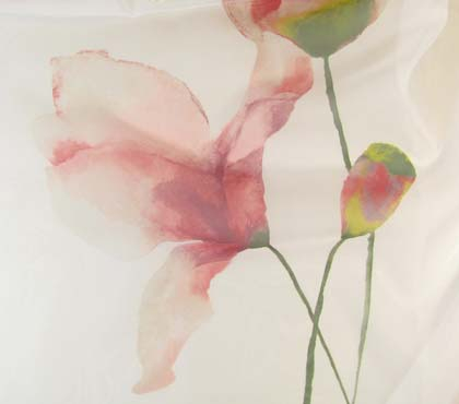 Beautiful floor-to-ceiling lace curtain. The fabric has a large floral pattern. Room high 300cm.