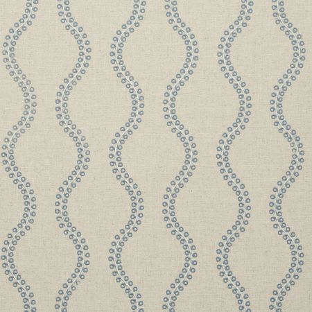 Flexible fine woven curtain fabric with embroidered wave pattern. The fabric is suitable for curtains and as decoration fabric.