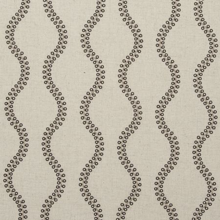Flexible fine woven curtain fabric with embroidered wave pattern. The fabric is suitable for curtains and as decoration fabric.
